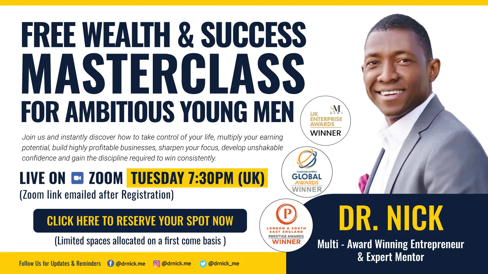 Dr. Nick is a Multi-Award-Winning Educator, Serial Entrepreneur and Expert Mentor with over 25 years of experience in helping individuals and businesses unlock their true potential.